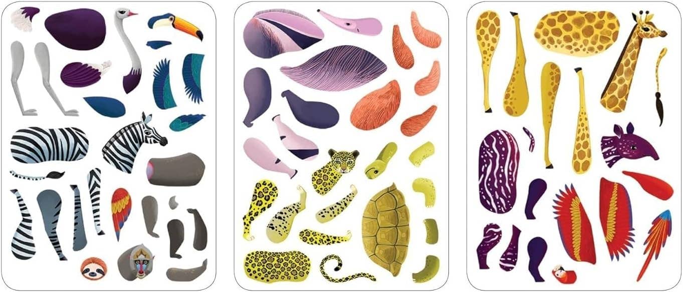 The Wild Mix-Up Magnetic Build-It includes 2 illustrated scenes and 3 sheets of mix-and-match magnets for creating your own wild animals! The sturdy tin package offers hours of imaginative play with easy cleanup and storage of pieces.