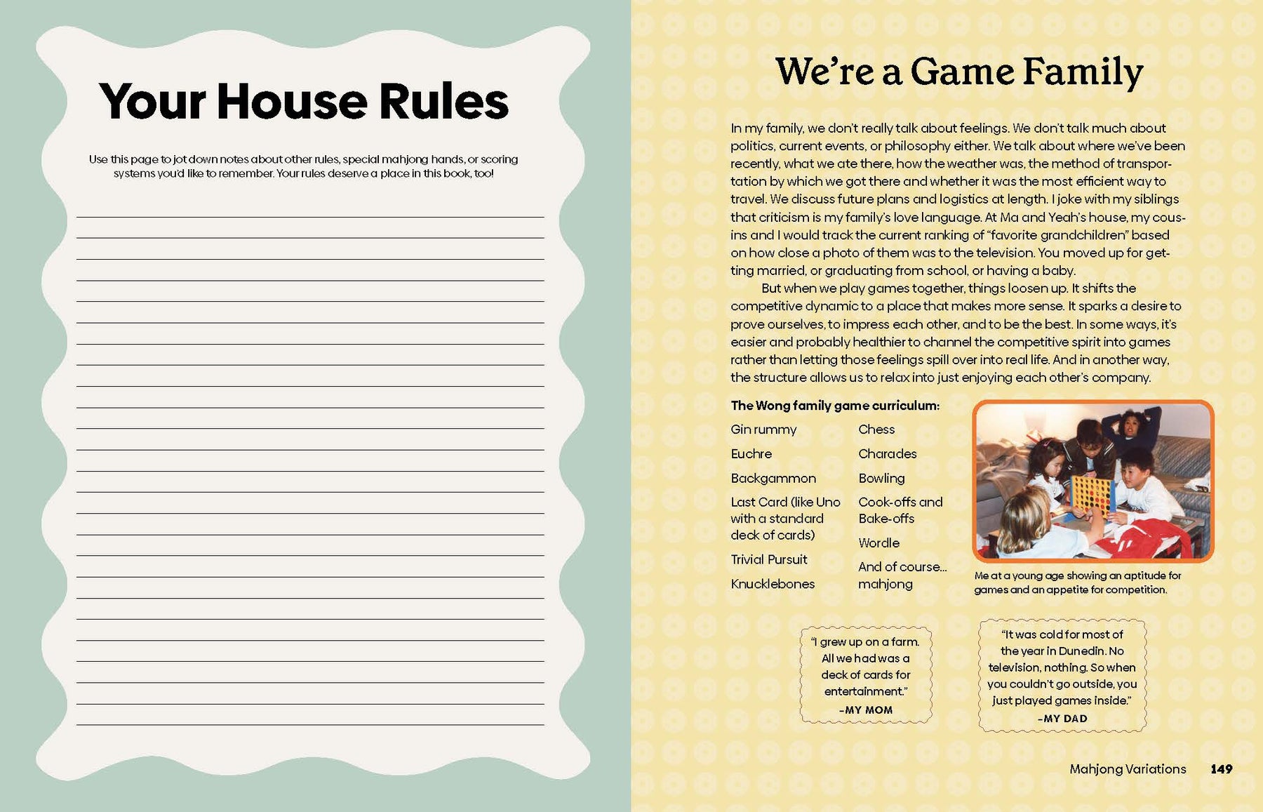 Mahjong offers a heartfelt, visually rich introduction to a game that carries deep resonance across generations and diasporas. Guided by Nicole Wong’s clear step-by-step instruction—rooted in the way her grandfather taught her—it blends gameplay basics with thoughtful explorations of strategy, history, and design. With vibrant photography and detailed diagrams, it welcomes both beginners and seasoned players into the tradition, touching on styles from American mah-jongg to Japanese riichi and beyond. A gentle, engaging companion for anyone looking to learn, reconnect, or share a beloved pastime.