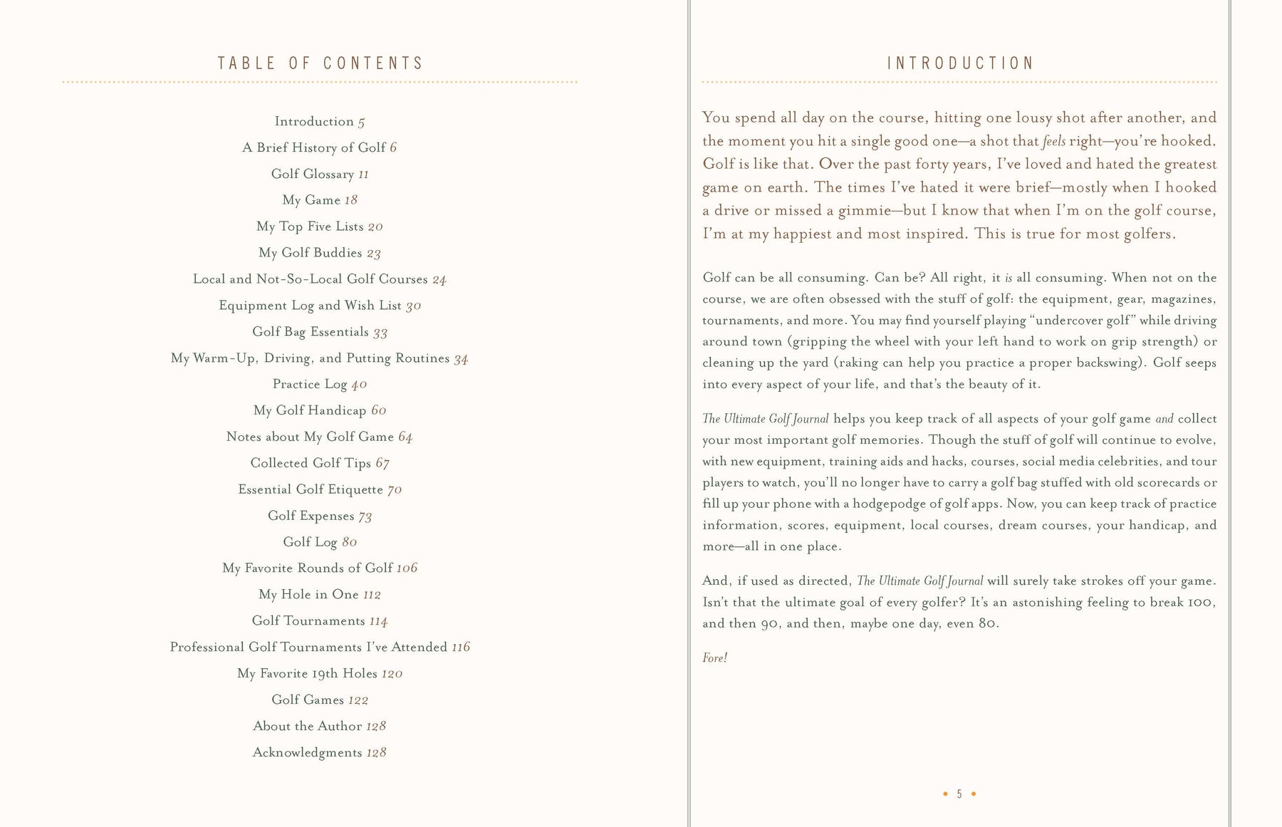 The Ultimate Golf Journal offers golfers a thoughtful way to track every part of their game, from score sheets and practice notes to equipment logs, course details, and favorite post-round stops. Designed to support players at any level, it gathers insights, records, and reflections into one beautifully organized place. Whether used to celebrate milestones, study progress, or simply savor time on the course, it’s a refined companion for anyone who loves the rhythm and challenge of the game.