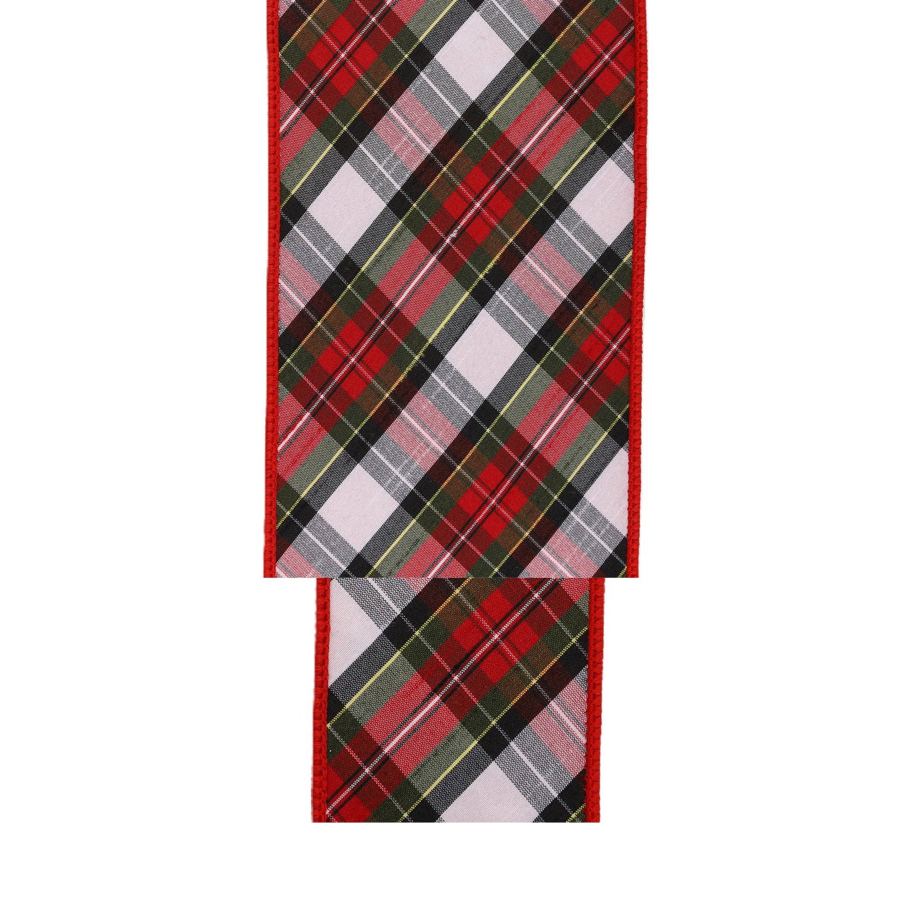 The 2.5" Wired Plaid Ribbon adds classic holiday charm to any project. Crafted from luxurious Dupioni fabric with a festive plaid pattern in red, green, black, and white, it brings timeless texture and color to your décor. The bias cut and double-fused red backing provide both flexibility and durability, while the wired edges make shaping bows and accents effortless. With 5 yards per roll, it’s perfect for wreaths, garlands, gift wrapping, and festive arrangements.