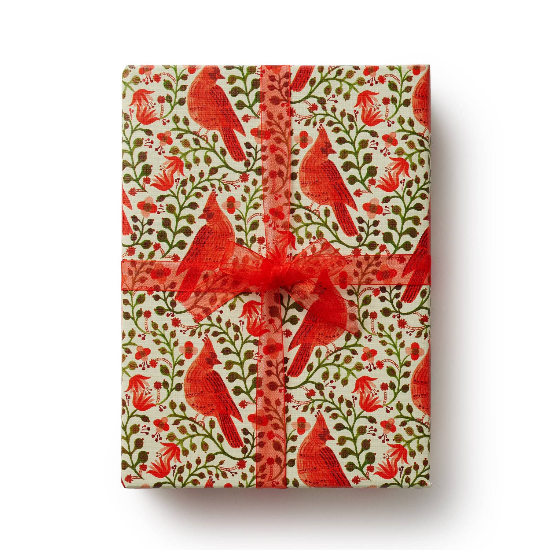 Bring seasonal cheer to every gift with the Cardinals Continuous Wrapping Roll. Printed with elegant cardinal illustrations and accented with red glitter foil, this roll adds a festive, storybook touch to your holiday wrapping.