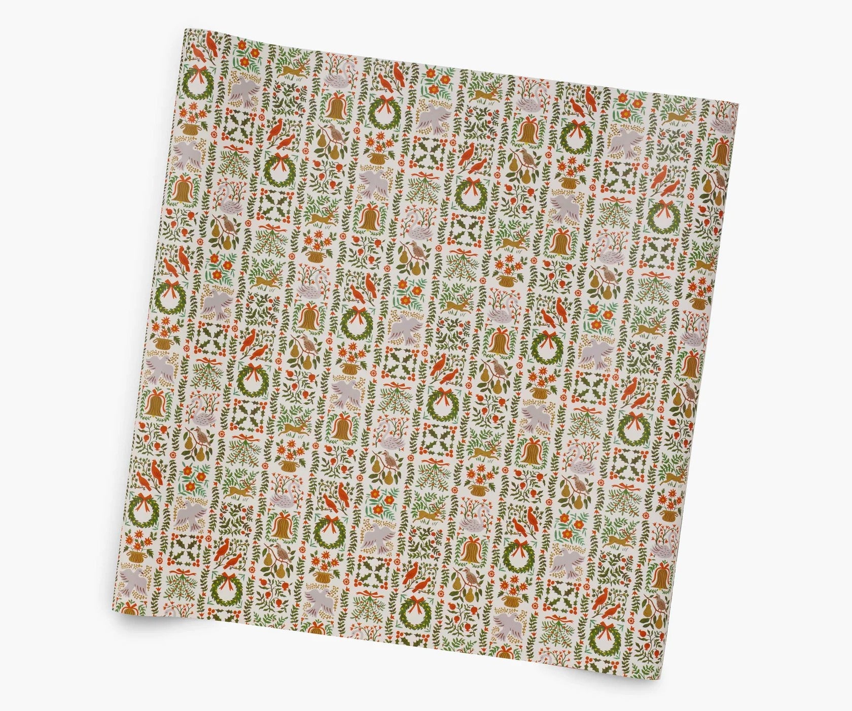 Dress up holiday presents and projects with this Christmastide Wrapping Roll, which features eight feet of paper with colorful illustrations, gold foil accents, and gridlines on the back.