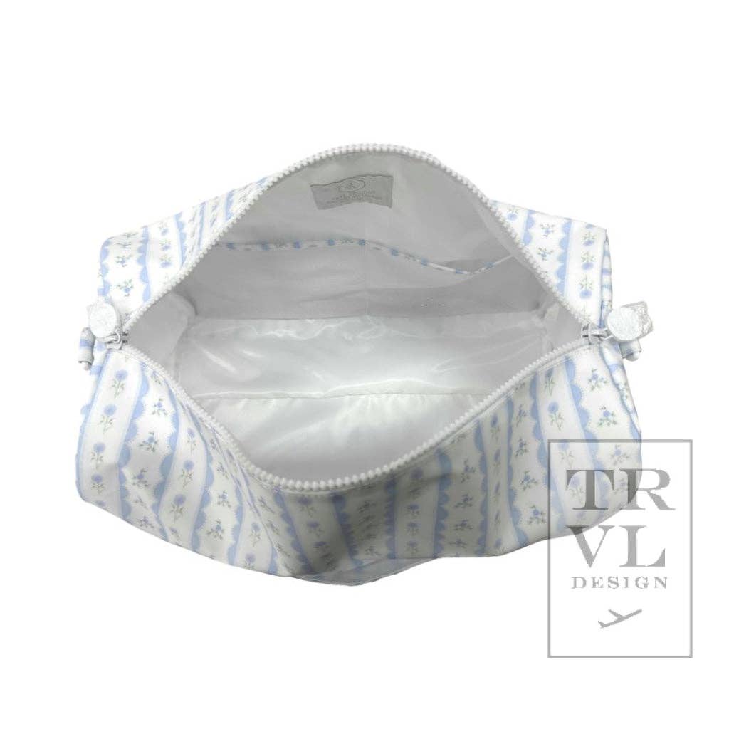 The Blue Floral Weekender blends charming design with practical ease, crafted from the same water-resistant coated cotton used in the brand’s beloved backpacks. Its adaptable shape shifts from a handled duffel to a comfortable crossbody with a quick change of the removable strap, while the interior offers generous space and a mesh pocket for simple organization. Lightweight, washable, and thoughtfully detailed, it’s an effortless companion for getaways near or far.