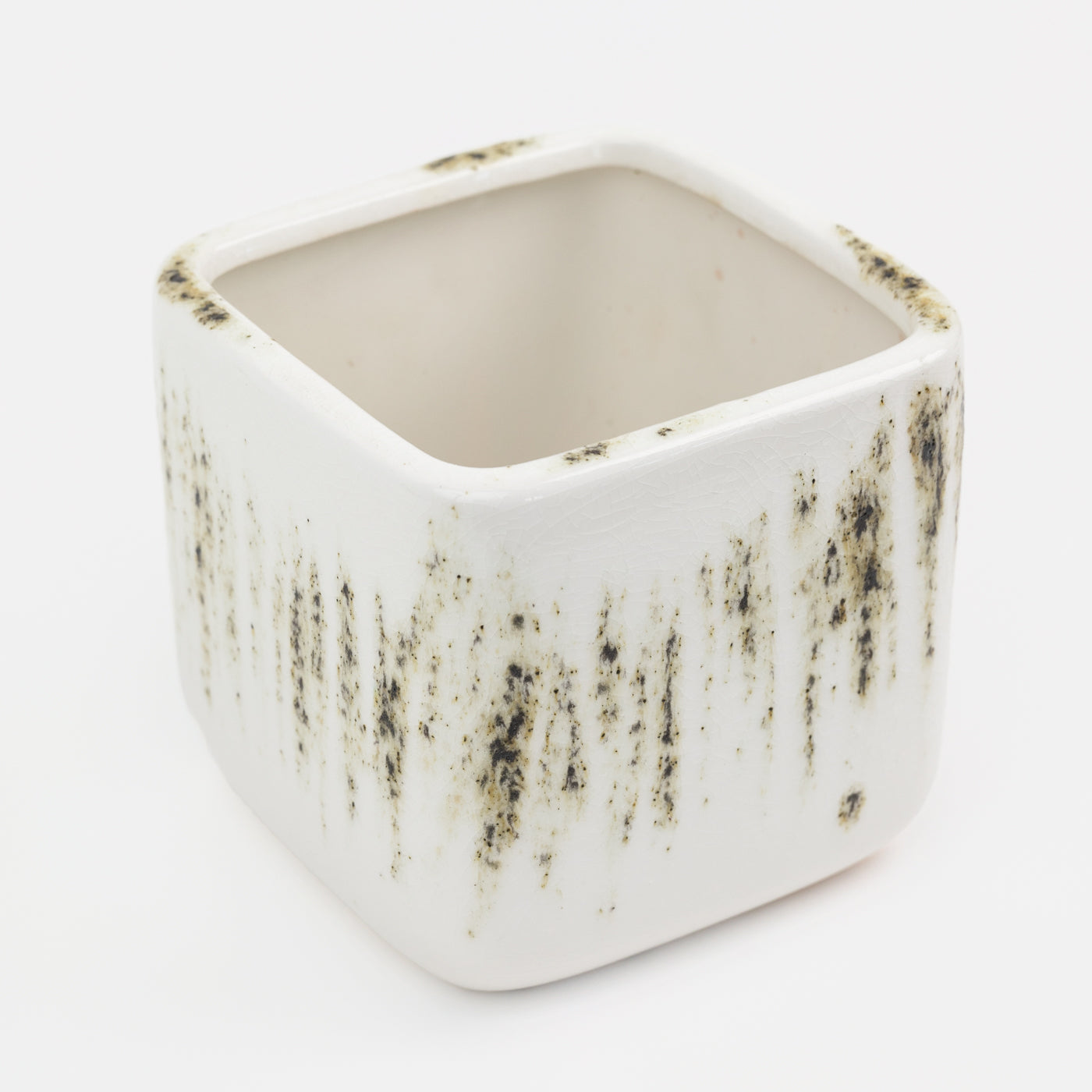 The Square Reactive Glaze Planter is expertly crafted using white stoneware and a reactive glaze. Its spacious design is ideal for medium-sized houseplants and the integrated drain hole ensures optimal plant growth.