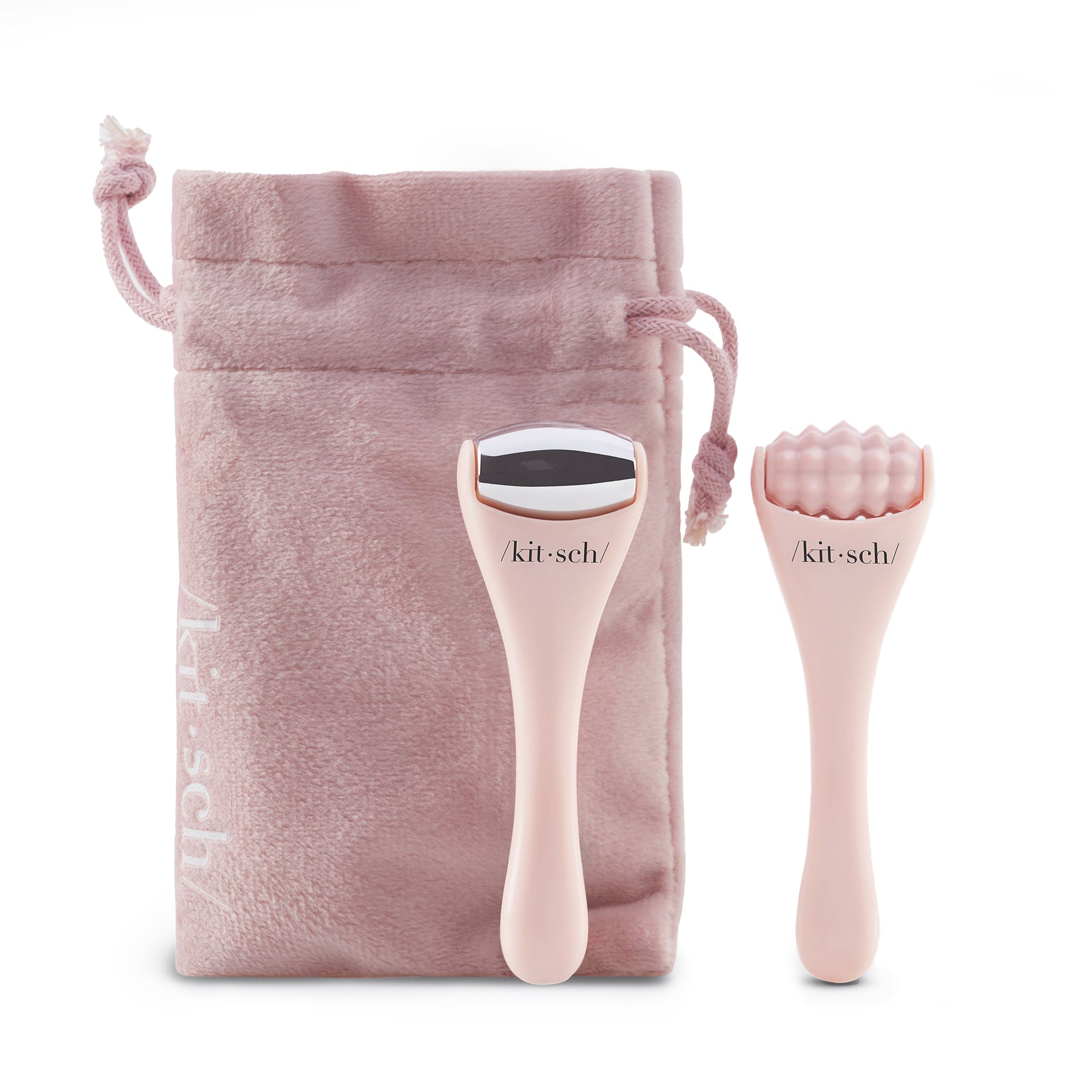 The Mini Spa Rollers Set brings a little at-home luxury to your skincare routine. Designed to fit the delicate contours of the face and eye area, this two-piece set helps refresh, soothe, and revive tired skin. The textured silicone roller boosts circulation and supports lymphatic drainage, while the smooth metal roller delivers a cooling touch that calms puffiness and inflammation. Use them on their own or pair with your favorite serums for deeper absorption. A soft velvet pouch keeps everything ready for easy storage or travel.