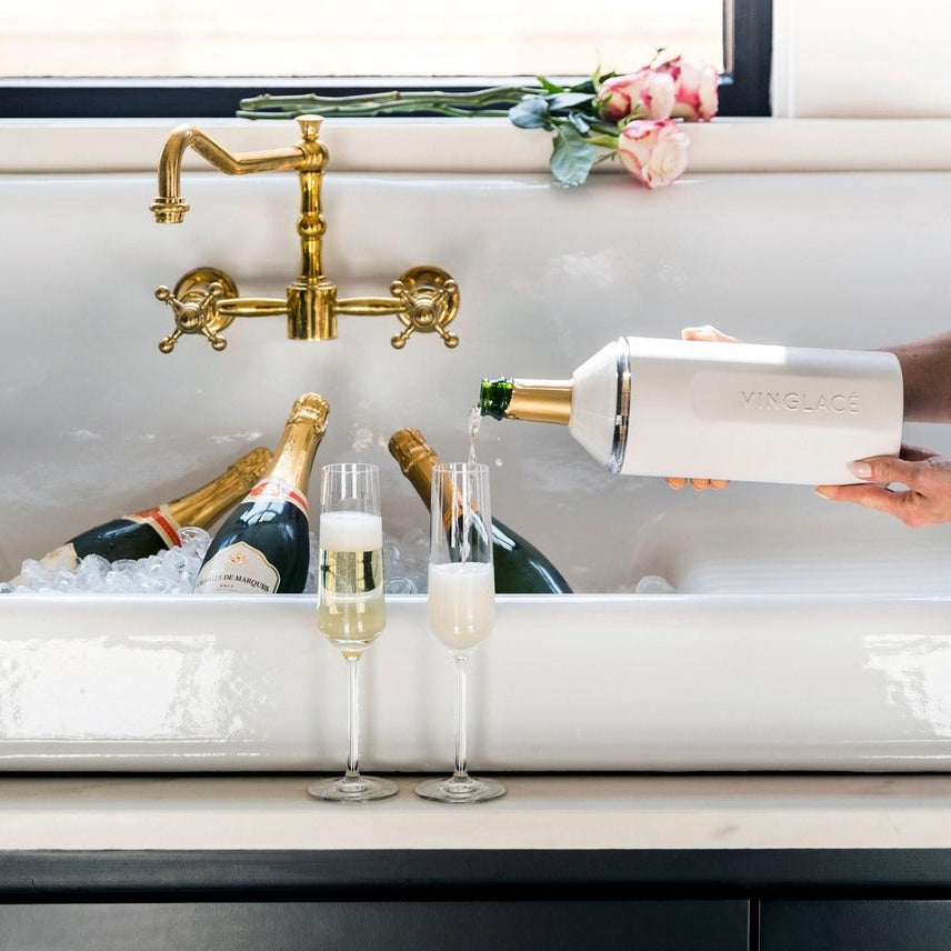 The Vinglacé portable wine and champagne bottle insulator is made of double walled stainless steel and is vacuum insulated, so it keeps your wine, champagne, and sparkling water chilled for hours. Lightweight and easy to carry, you can enjoy your wine anywhere you go.
