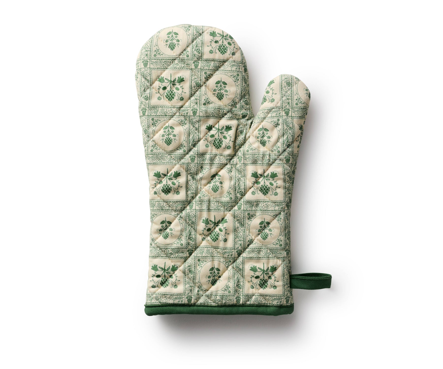 Artichoke Oven Mitt combines function with effortless style, featuring quilted detailing, contrast piping, and a handy corner loop for hanging. Perfect for handling hot dishes or adding a touch of charm to your kitchen.