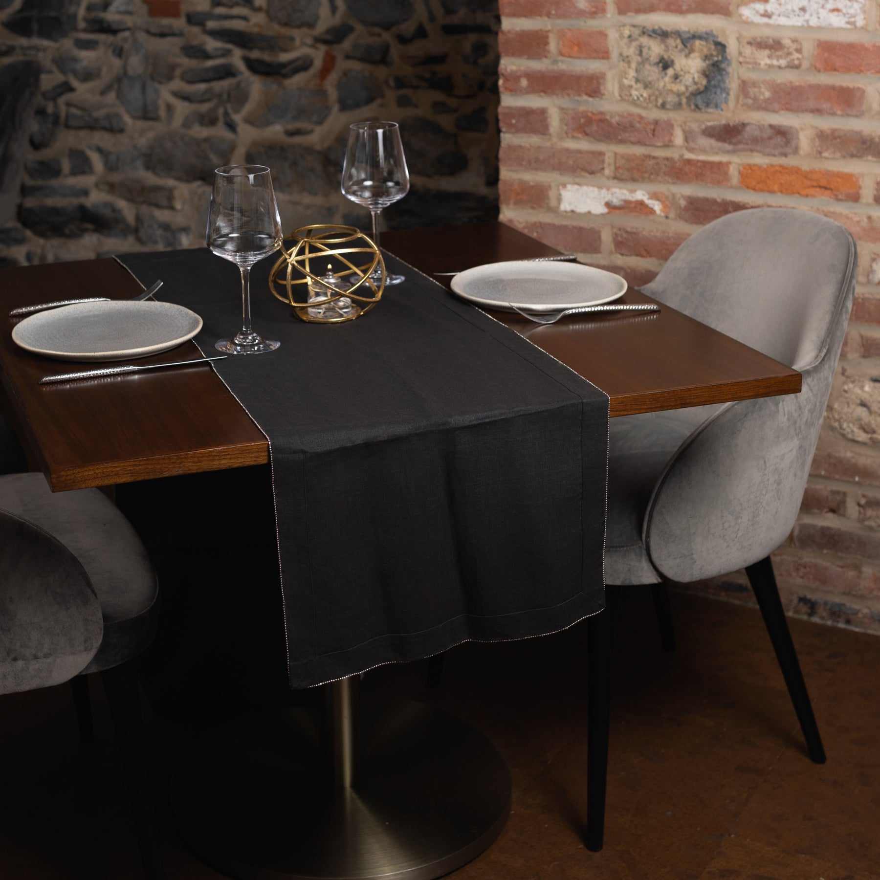 Rich in texture and tone, the Charcoal Silver Beaded Table Runner brings a sophisticated edge to your table. Crafted from pure linen and finished with hand-applied silver brass beading, this runner blends organic materials with subtle shine. A versatile, year-round accent that complements Michael Aram’s collections and adds artisanal elegance to any setting.