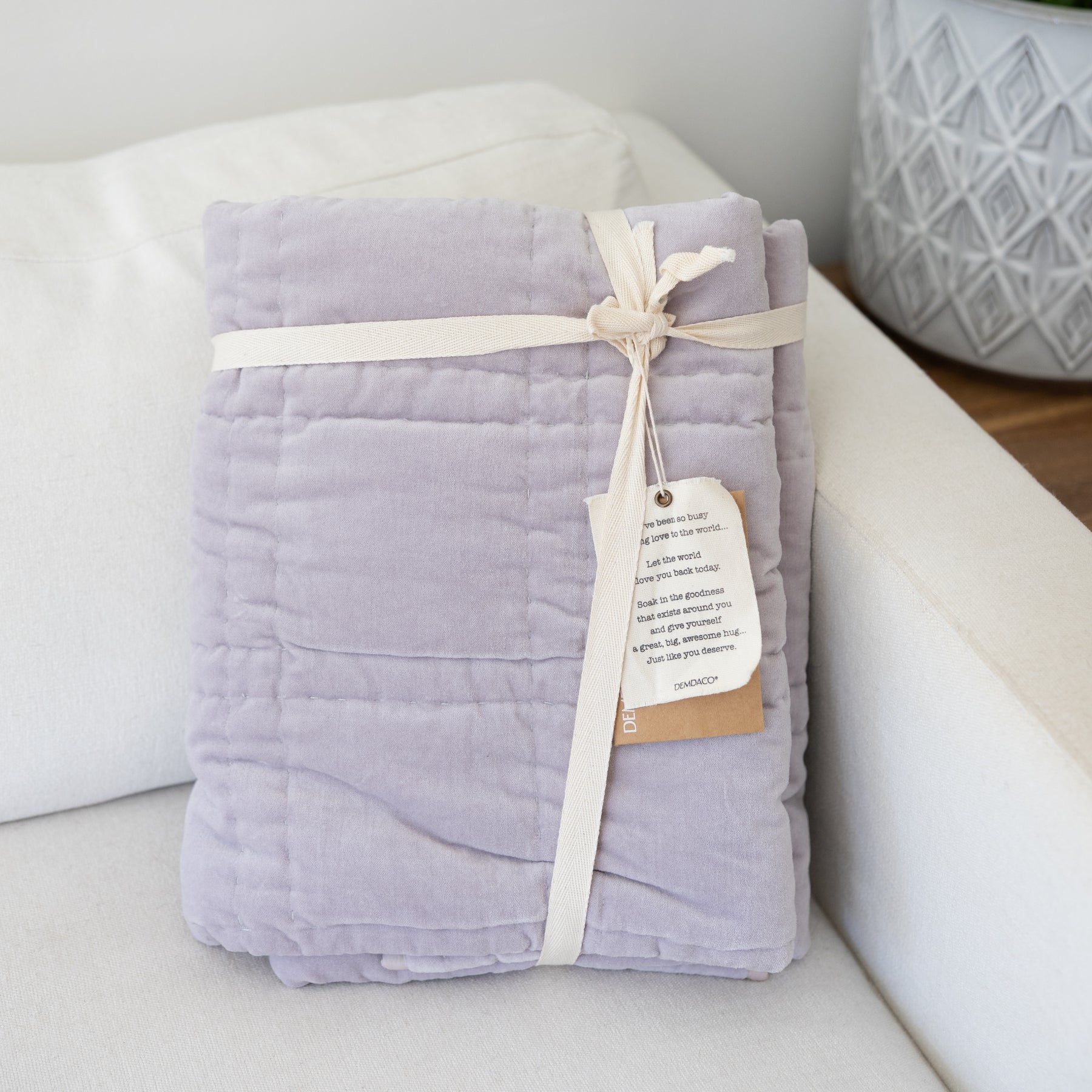 This Purple Velvet Throw Blanket is crafted in a modern quilted velvet fabric. The perfect accent décor piece that’s so soft.