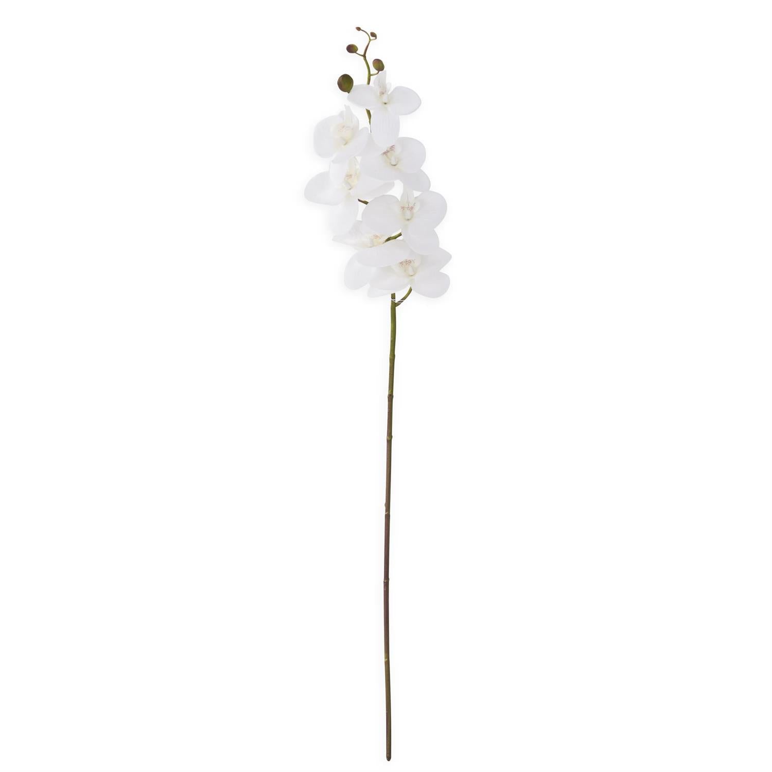 Elegant and timeless, this 34.5" White Orchid Stem adds a touch of natural beauty to any space. With its lifelike fabric petals, delicate arching shape, and sturdy iron stem, this orchid is perfect for creating stunning floral arrangements or displaying solo for a minimalist statement.