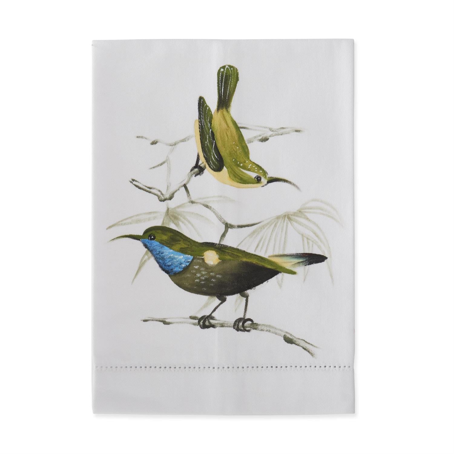 The Aviary Painted Guest Towel brings a gentle, nature-forward touch to bath or powder rooms with hand-painted bird motifs and soft cotton texture. Each towel feels thoughtfully made, adding color and character while remaining practical for everyday or guest use.