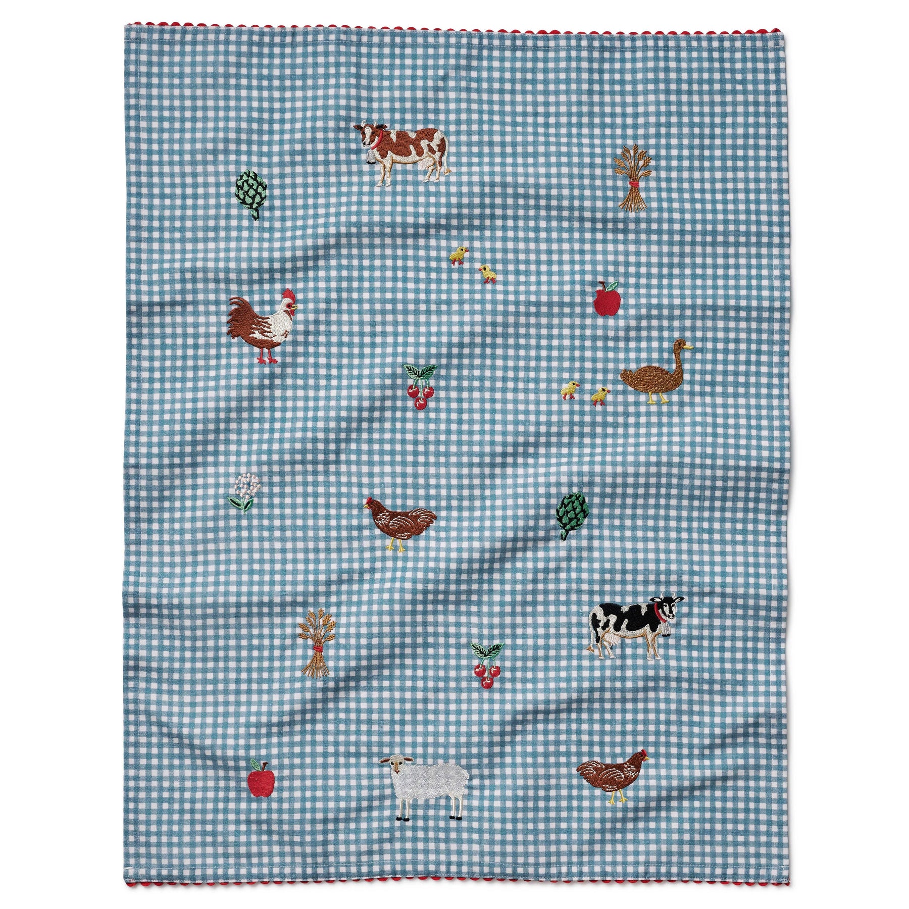 Add a touch of charm to your kitchen with our delightful tea towel! Featuring charming illustrations and rick rack trim, it’s perfect for lining a bread basket, drying dishes, or simply brightening up your kitchen space.