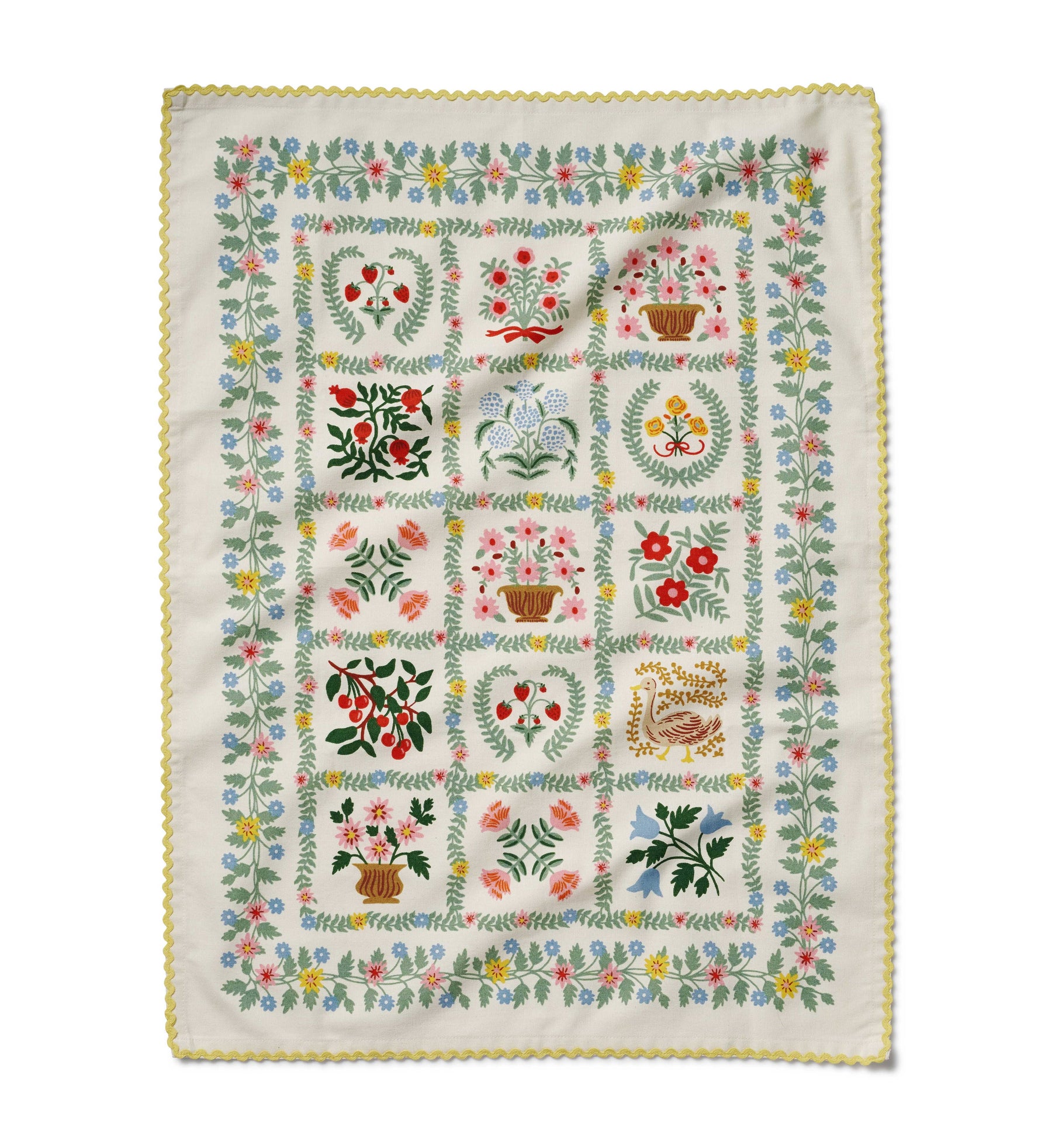 Brighten up your kitchen with our charming Helena Tea Towel, featuring delightful illustrations and a fun rick rack trim. Ideal for lining a bread basket, drying dishes, or simply adding a splash of color to your space.