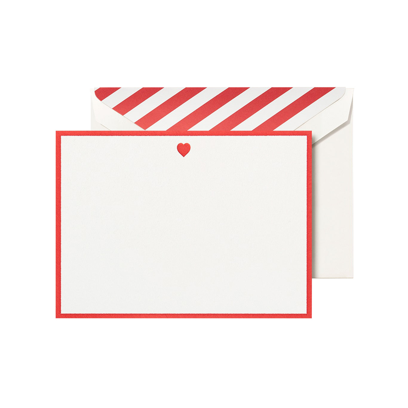 Bright, eye-catching colors and a classic heart motif make these pearl white Bordered Heart Cards a memorable way to express your affection. Whether you need a Valentine's Day note or just an everyday way to say "I love you," artisan engraving, a bright border, and red-and-white striped envelope lining create a joyful canvas for your heartfelt words.
