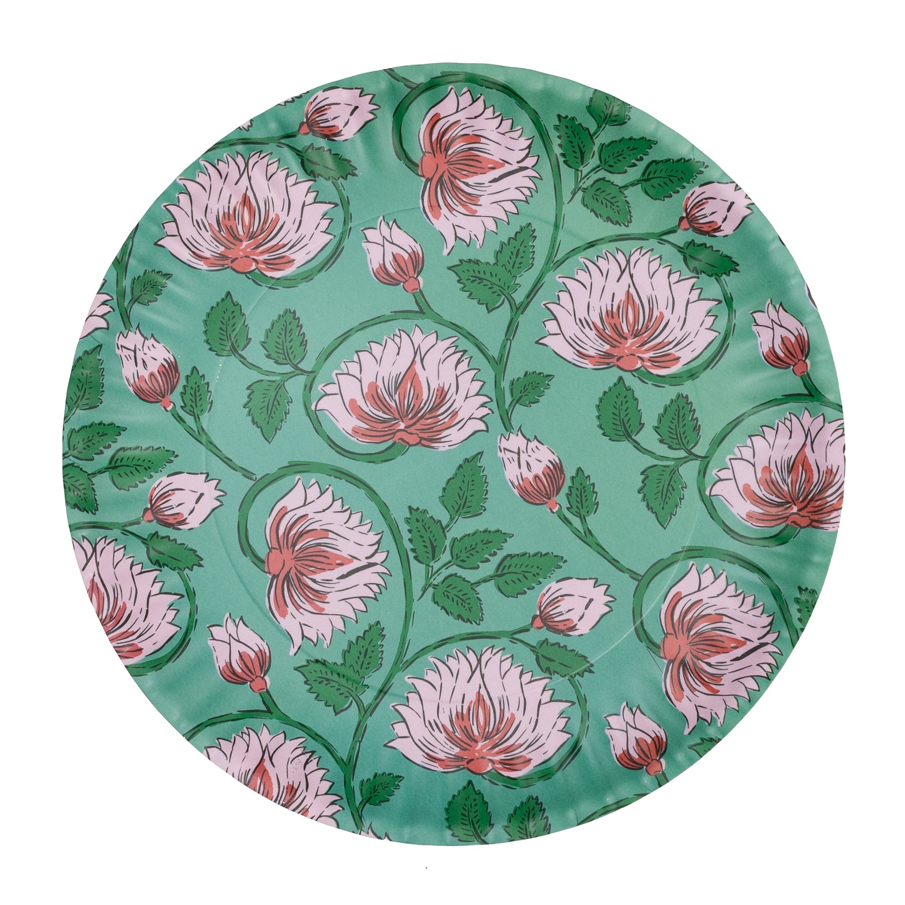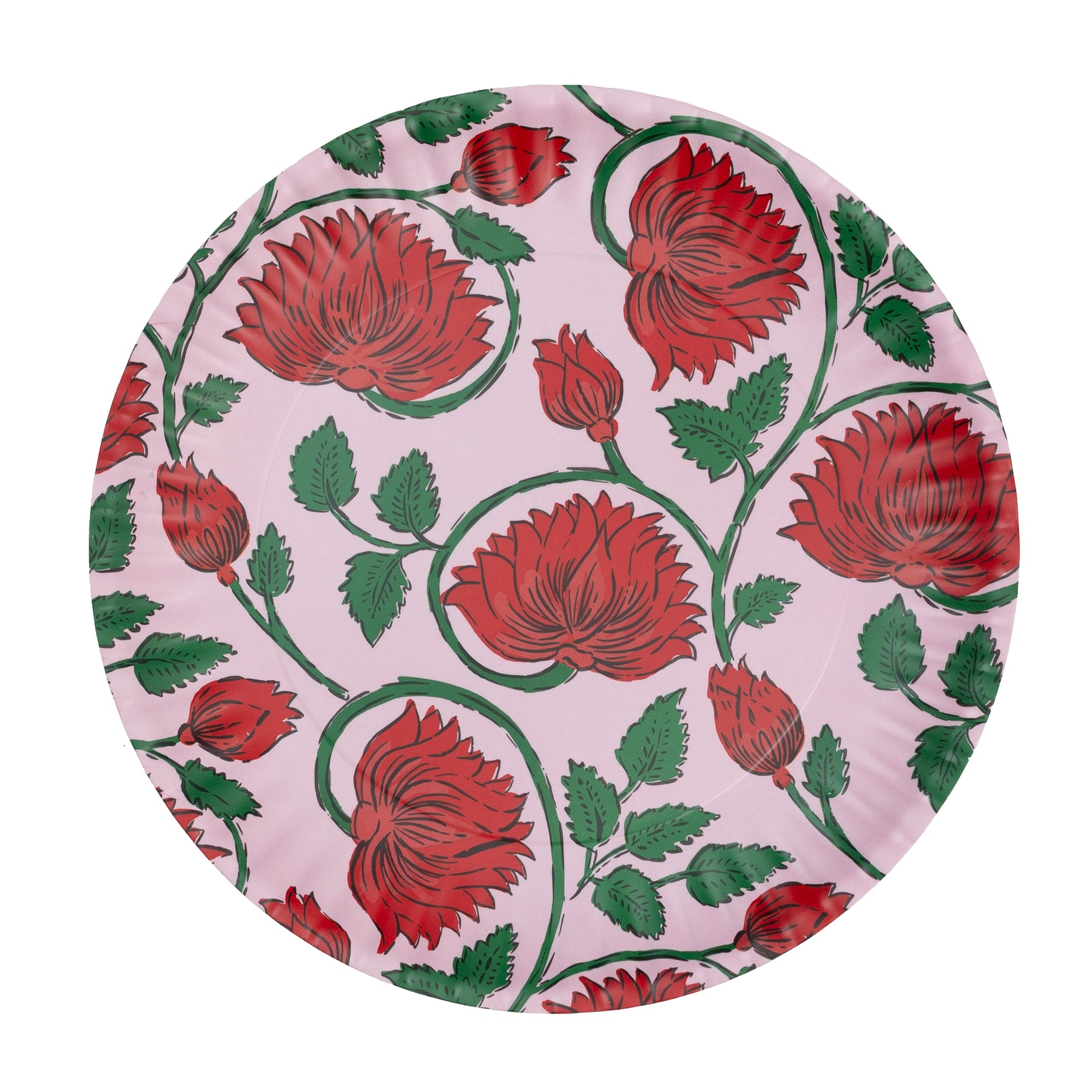 The Spice Trail melamine platter brings a festive touch to gatherings, with a design that mimics the look of patterned paper plates while offering the durability of melamine. At 16 inches, these assorted platters are perfect for serving mains, appetizers, or desserts indoors or out.