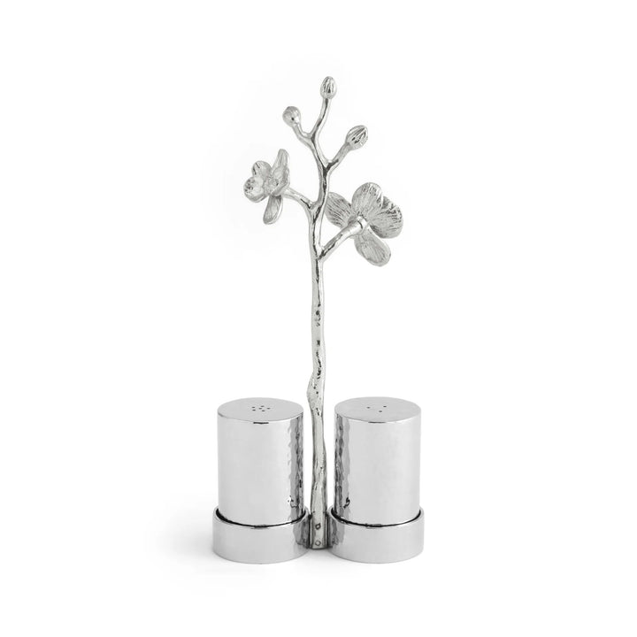 Delicate yet striking, the White Orchid Salt & Pepper Set brings a refined elegance to any dining table. Featuring a sculptural nickelplate caddy with intricate orchid detailing, this set transforms an everyday essential into a work of art. A perfect addition for those who appreciate beauty in the little details.